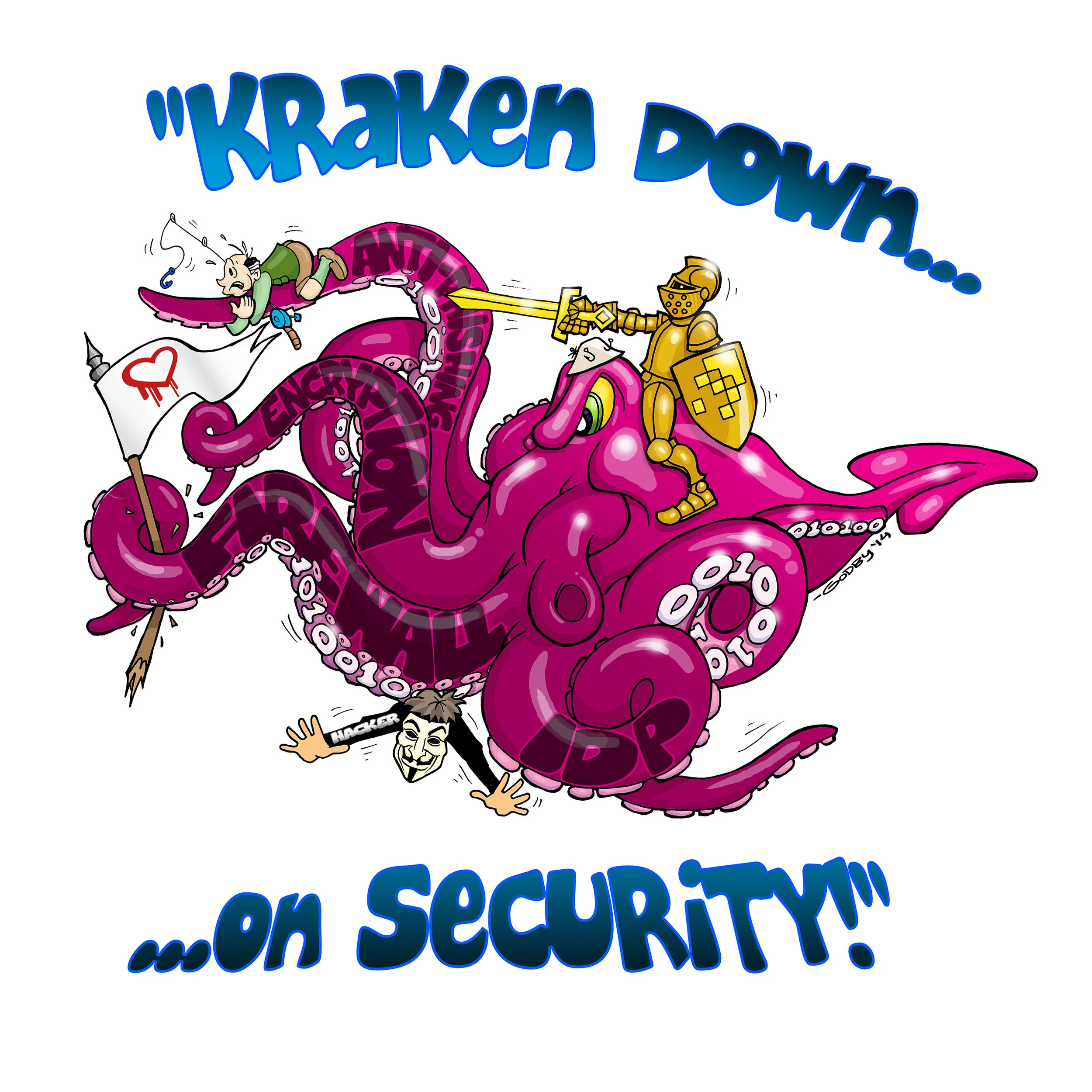 Kraken Down on Security was a marketing campaign for Sword & Shield Enterprise Security, a premier holistic information security provider located in Knoxville, Tennessee. The design features their company mascot, the golden knight "Lance", riding on top of a kraken. The beast is shown crushing what was symbolically referred to as a “hacker”. Other marketing key points are infused into the design...